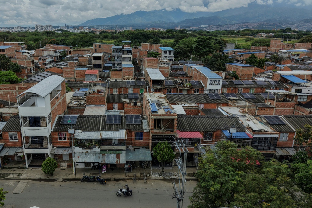 Em Cali, no sudoeste, terceira cidade mais populosa do país, 2.000 lares pobres recebem energia solar.