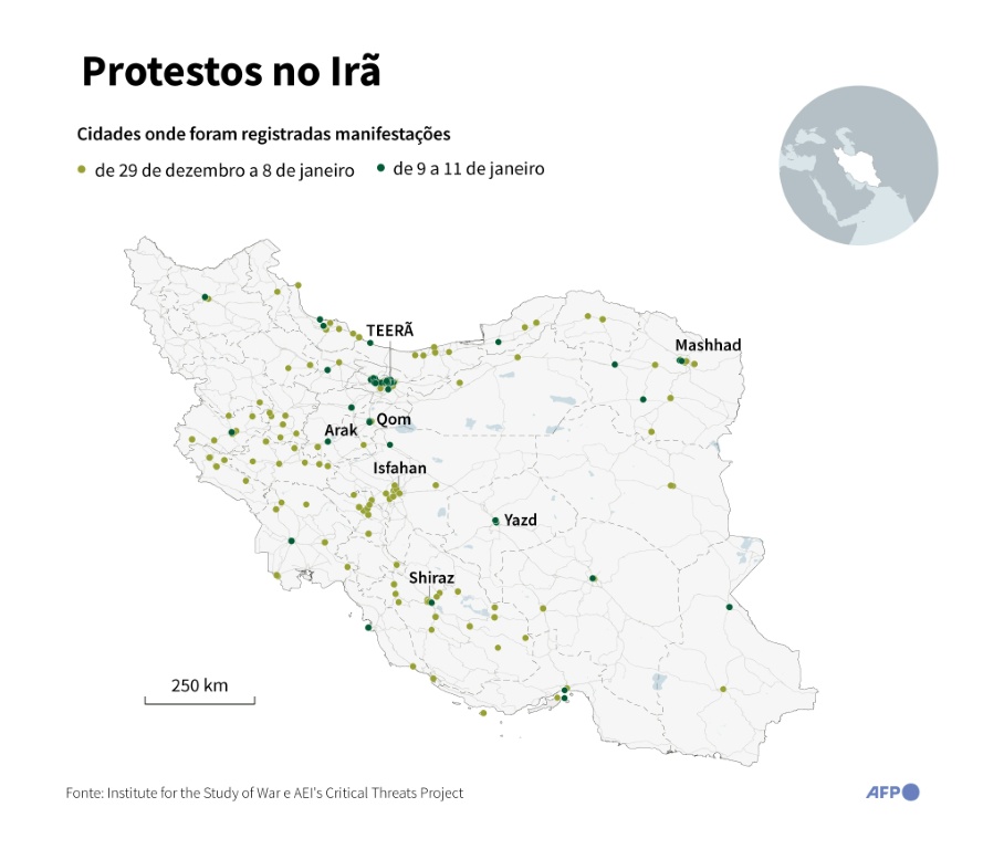 Ainda assim, essas manifestações “representam o desafio mais grave à República Islâmica em anos, tanto por sua amplitude quanto por suas reivindicações políticas cada vez mais explícitas”, afirmou à AFP Nicole Grajewski, professora do Centro de Estudos Internacionais da Sciences Po, em Paris.