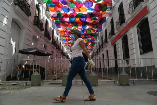 Uma mulher de máscara e luvas caminha pelo centro de Caracas em 14 de julho de 2020 afp_tickers