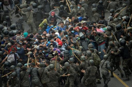 As forças de segurança, que no domingo haviam agredido os migrantes, receberam ordem do presidente Alejandro Giammattei para interromper seu avanço devido ao risco de infecções por covid-19. As ações deixaram migrantes uniformizados e feridos.