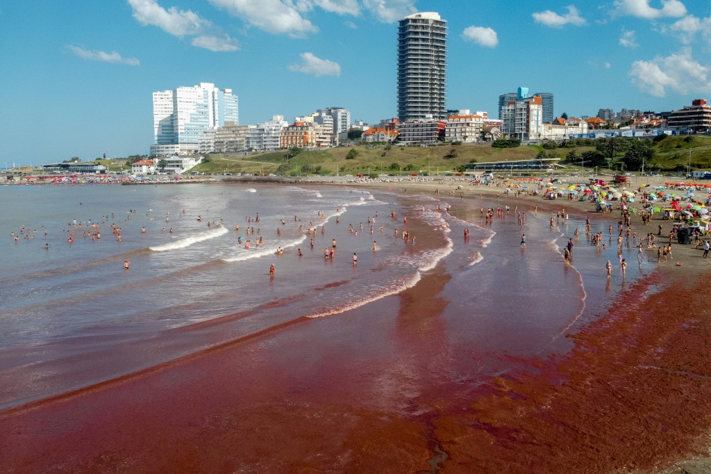 Banhistas de praias turísticas da costa atlântica da província argentina de Buenos Aires se depararam nesta sexta-feira (21) com uma “maré vermelha” provocada pelo acúmulo de algas.