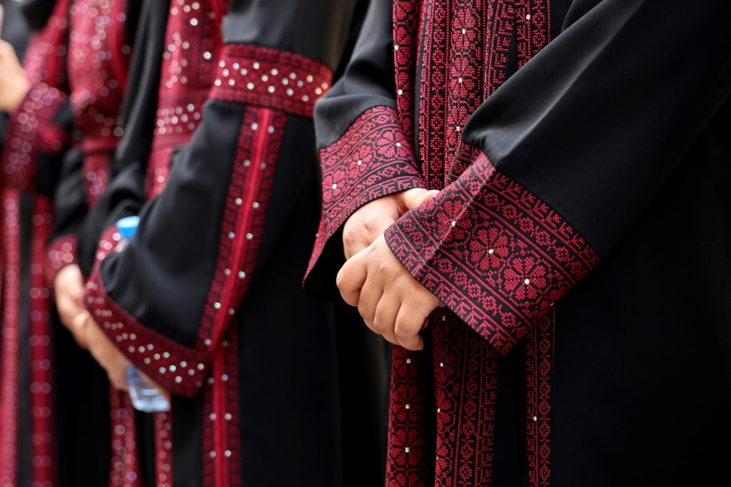Durante séculos, os palestinos costuraram longos vestidos pretos adornados com bordados vermelhos brilhantes que ainda são usados em áreas rurais, em casamentos e outras celebrações.