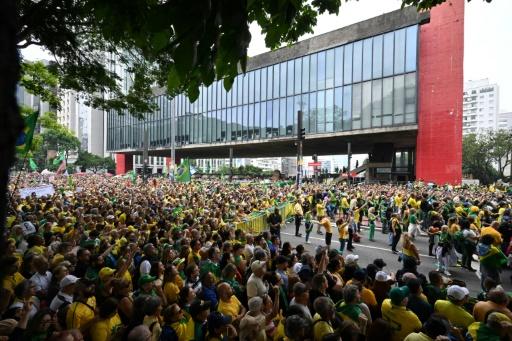 Milhares de simpatizantes do ex-presidente de extrema-direita Jair Bolsonaro protestaram no domingo (26) em São Paulo para exigir a saída do juiz Alexandre de Moraes do Supremo Tribunal Federal (STF).