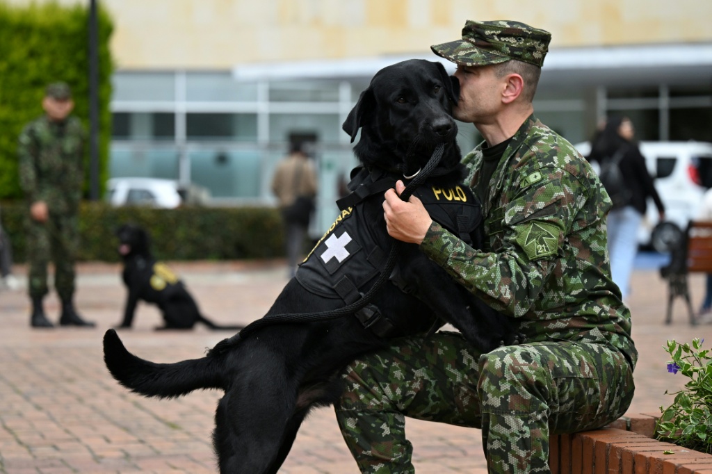 “É maravilhoso ver este cão que vem nos apoiar emocionalmente aqui”, diz o soldado à AFP no Hospital Militar de Bogotá.