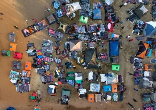 Fora do local, centenas de migrantes se amontoavam para obter algum alimento levado por ativistas e associações religiosas. Acampamentos improvisados eram erguidos na região.