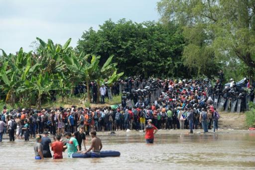 Centenas de migrantes hondurenhos se atiraram nesta segunda-feira (29) no caudaloso rio fronteiriço entre Guatemala e México para entrar em território mexicano, diante a blindagem da fronteira terrestre, e poder assim seguir a pé sua travessia rumo aos Estados Unidos, constatou a AFP.