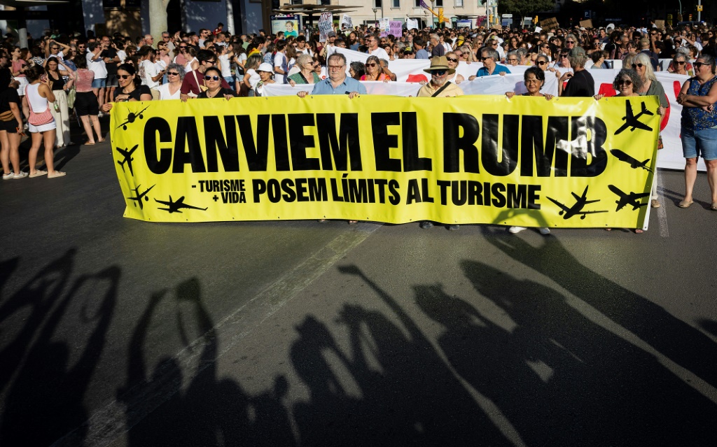 Os protestos foram convocados por cerca de 80 organizações e grupos sociais que exigem limites para o turismo maciço nas Baleares, cujas principais ilhas são Mallorca, Menorca e Ibiza.