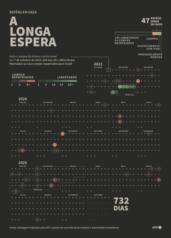 O pacto busca pôr fim a dois anos de guerra em Gaza, um conflito que começou com o ataque do Hamas em 7 de outubro de 2023 em território israelense, que deixou 1.219 mortos, na sua maioria civis, segundo um balanço da AFP com base em dados oficiais.