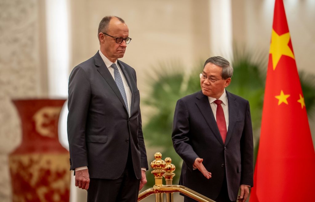 Merz também se reuniu com o primeiro‑ministro chinês, Li Qiang, durante a manhã, no opulento Grande Salão do Povo, em Pequim, onde pediu uma cooperação “justa”.