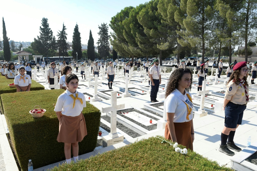 Este último presidiu pela manhã uma cerimônia em memória dos soldados mortos em um cemitério militar em Nicósia, a última capital dividida do mundo.