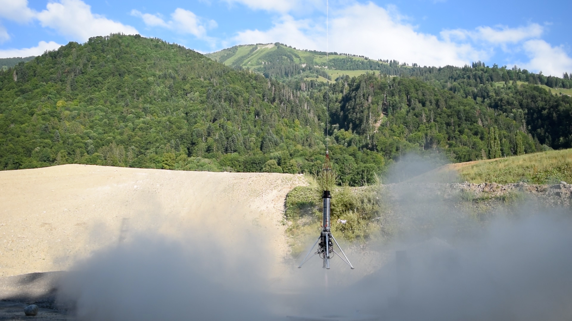 No entanto, a primavera chuvosa bagunçou o meio de campo da equipe Nicollier: dos 13 testes de queda planejados, somente dois puderam ser realizados. No vídeo mostrado pelos estudantes, o teste funciona bem e o foguete encontra seu local de pouso.