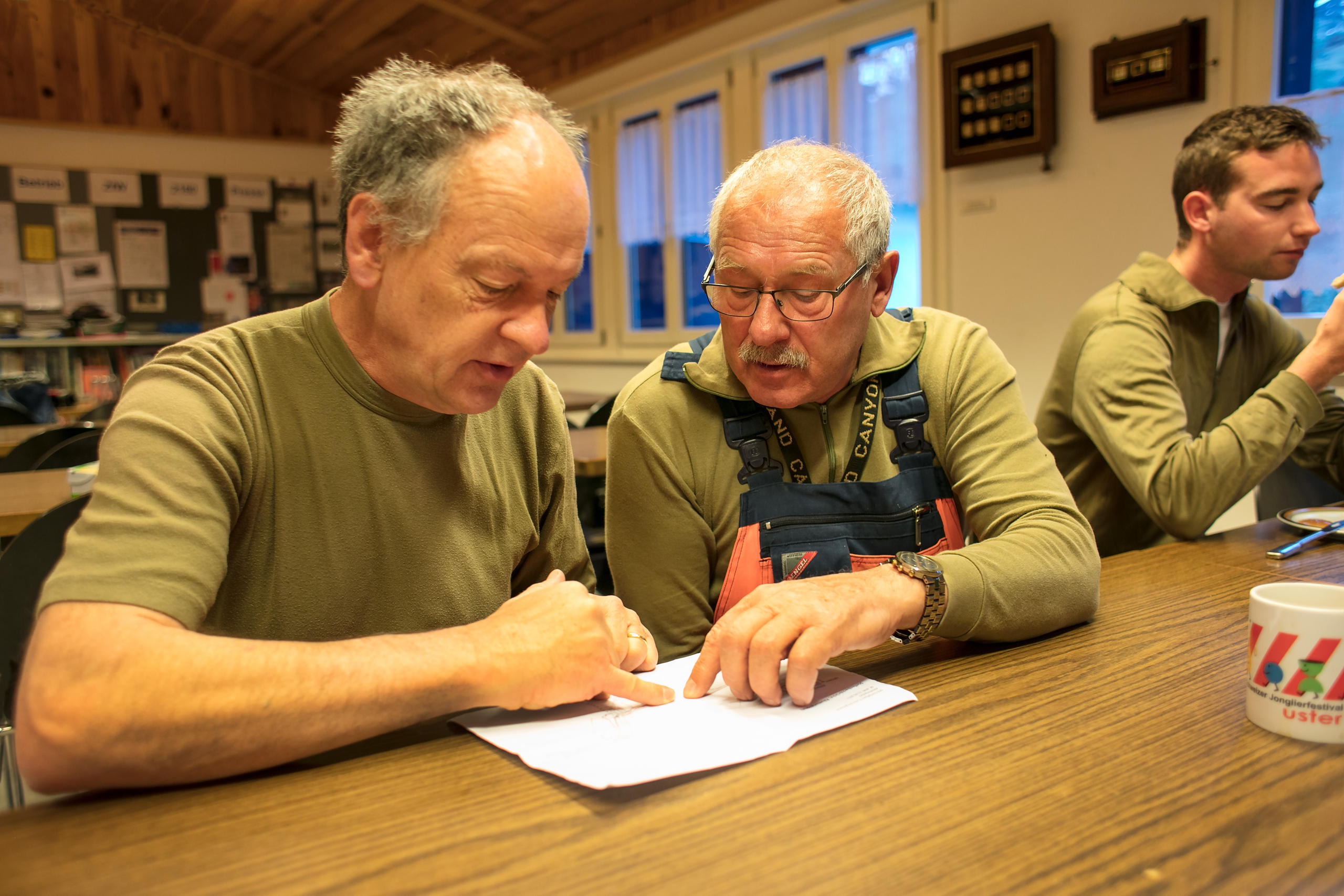 São cinco e meia da manhã. As montanhas cobertas de neve ganham uma tonalidade azul ao surgirem os primeiros raios de sol. Em Realp, um pequeno vilarejo no cantão de Uri, o mundo parece ainda dormir. Um pouco mais longe, uma casinha atrai a atenção com suas janelas iluminadas: é a cantina da Associação de Amigos da Ferrovia do FurkaLink externo. Os voluntários ainda têm marcas de travesseiros no rosto. Enquanto contam piadas, vão passando o pão e a geleia aos vizinhos de mesa.