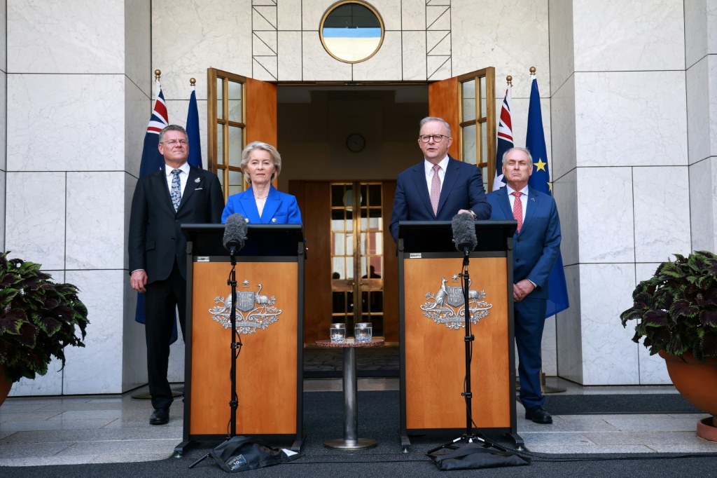 “Todos sentimos o impacto dos preços do gás e do petróleo em nossas empresas e sociedades”, comentou Ursula, acompanhada do primeiro-ministro australiano, Anthony Albanese, em Camberra. “É de extrema importância chegarmos a uma solução negociada que ponha fim às hostilidades que vemos no Oriente Médio”, acrescentou.