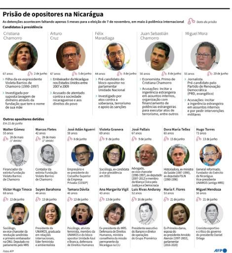 Perfil dos 19 opositores detidos na Nicarágua nos últimos dias afp_tickers