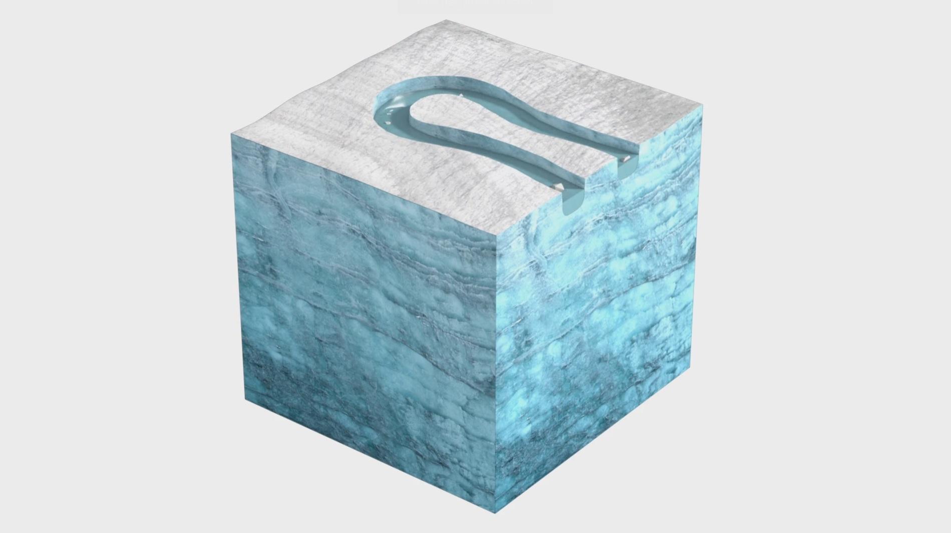 The cut-and-closure-process at the entry could be an explanation for how this structure was created. Up until now, this process has mainly been observed in Arctic glaciers.