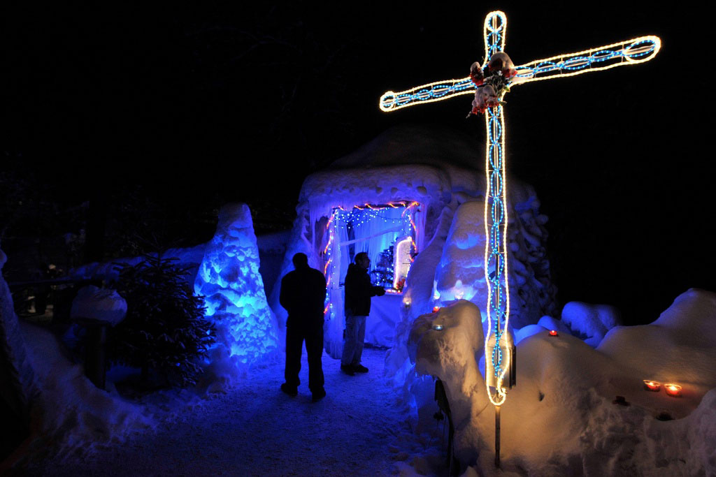 Gruta de gelo com uma imagem de Nossa Senhora. (Geraldo Hoffmann, swissinfo.ch)