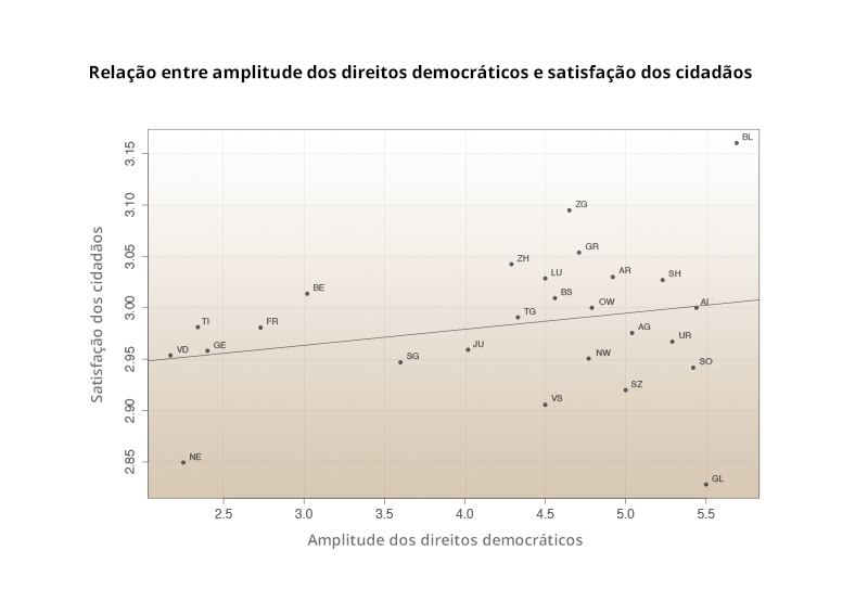 Stefan Rey fez uma primeira descoberta potencialmente interessante. Seu trabalho centrou-se na correlação entre a amplitude dos direitos democráticos disponíveis, dependendo do cantão (referendo financeiro, direito de iniciativa individual, etc.), e a satisfação dos cidadãos. “Seria de se esperar que os cidadãos com uma ampla gama de ferramentas da democracia direta estariam mais satisfeitos com o sistema do que os outros e quanto mais votações sobre diversos temas, mais eles estariam satisfeitos.”