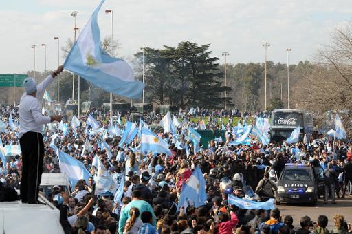 Os jogadores foram recebidos nesta segunda no aeroporto de Ezezia, na província de Buenos Aires, por uma multidão de torcedores.