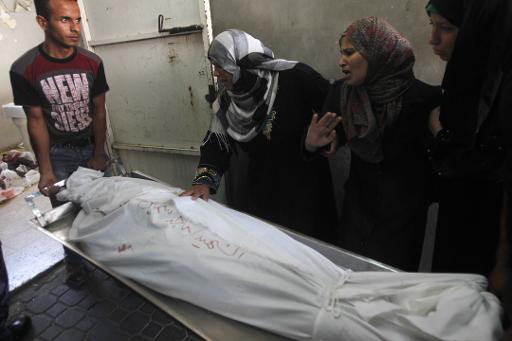 Mulheres palestinas choram em Khan Yunes diante de corpo de homem morto por bombardeios israelenses afp_tickers