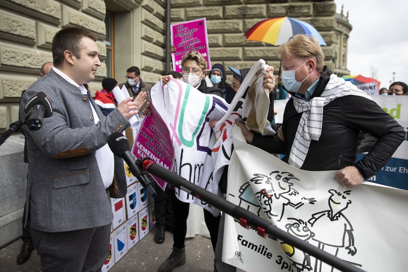 A Suíça é um dos últimos quatro países da Europa Ocidental a não conceder aos homossexuais o direito de se casar, junto com Itália, Grécia e Liechtenstein. A Confederação ocupa, assim, apenas o 23º lugar na ILGA-EuropeLink externo, uma classificação dos países de acordo com os direitos iguais de pessoas LGBTQIA+. O país alpino aparece na frente de Estónia e Sérvia.