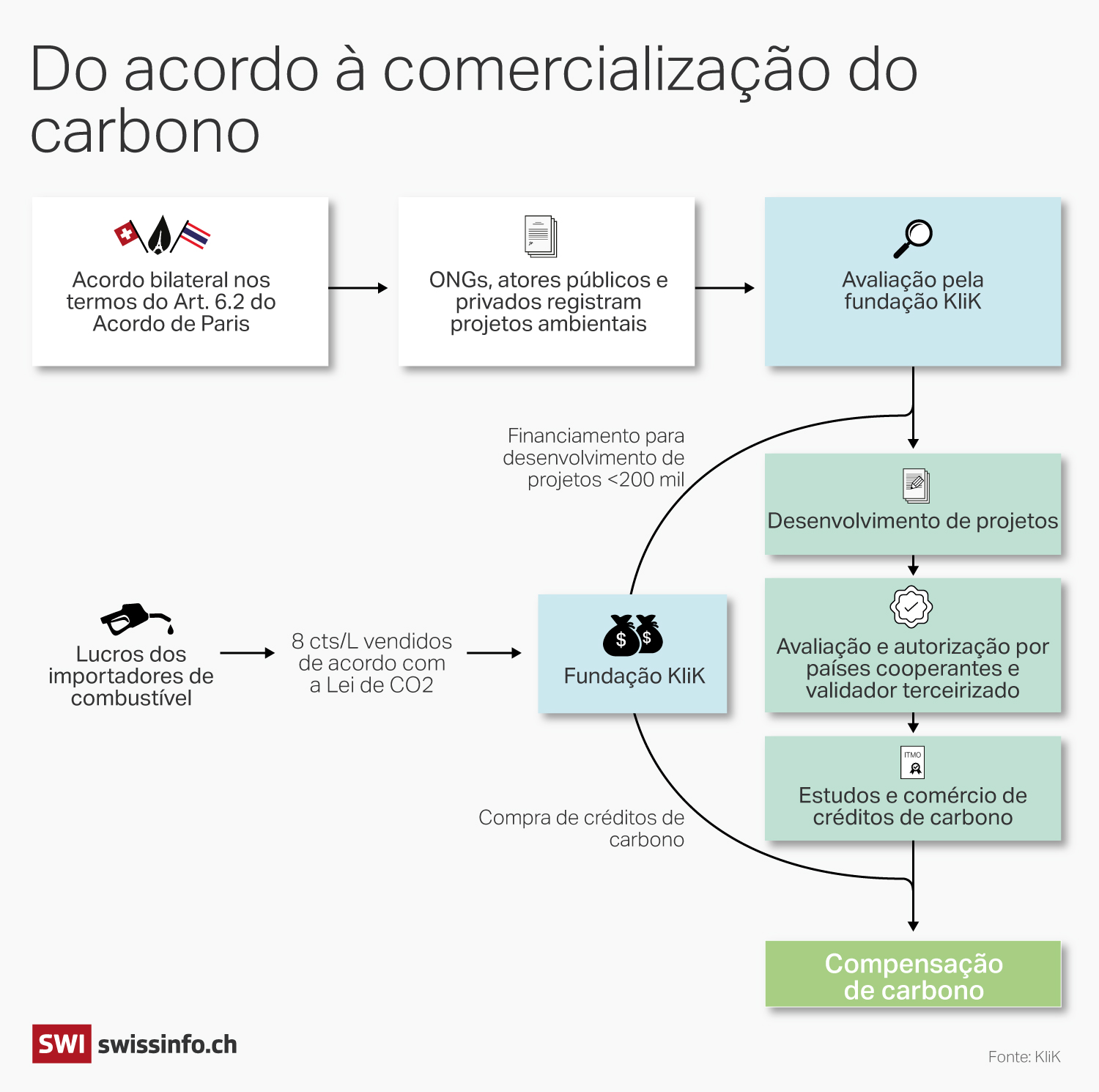 Uma vez que a Suíça assina um acordo bilateral com um país, em princípio, qualquer empresa ou associação industrial que queira compensar suas emissões poderia comprar créditos de projetos nesses países. Para isso, porém, primeiro precisam encontrar um projeto viável que se encaixe nos critérios estabelecidos pelo Acordo de Paris, o tratado internacional juridicamente vinculativo sobre mudanças climáticas assinado em 2015.