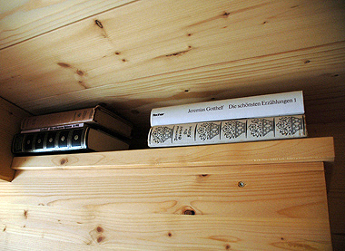 Livros de Jeremias Gotthelf (1797-1854) estão espalhados no quarto.