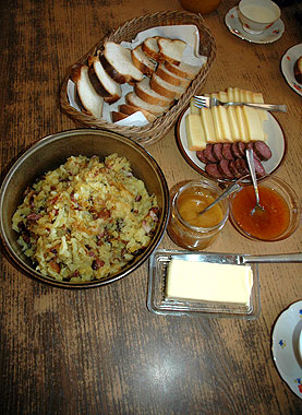 No café-da-manhã, os turistas são presenteados com "rösti" (batatas assadas) e outras especialidades da região.