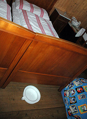 O penico é colocado discretamente embaixo da cama, lembrando que não há banheiro.
