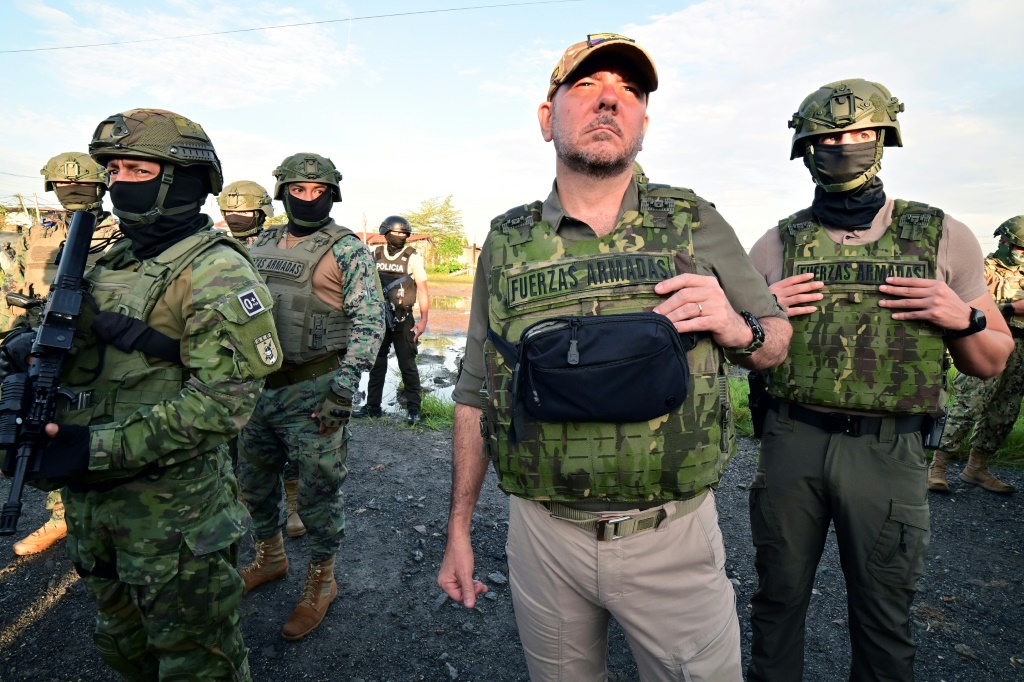 Os enviados do presidente recentemente reeleito do Equador, Daniel Noboa, também discutiram “a articulação das Forças Armadas em operações de segurança interna” com o ministro da Defesa de El Salvador, René Francis Merino, de acordo com o ministério equatoriano.