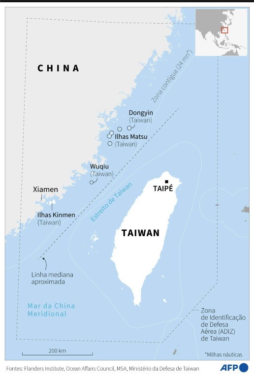 Taiwan fica a 130 km do continente, mas algumas ilhas taiwanesas menores, como Kinmen e Matsu, ficam a uma curta distância da costa chinesa.