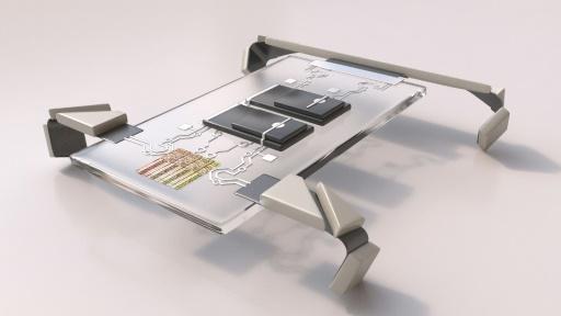 Cada robô é composto por um circuito simples fabricado a partir de células fotovoltaicas de silício (o corpo) e de quatro acionadores eletroquímicos (as patas).