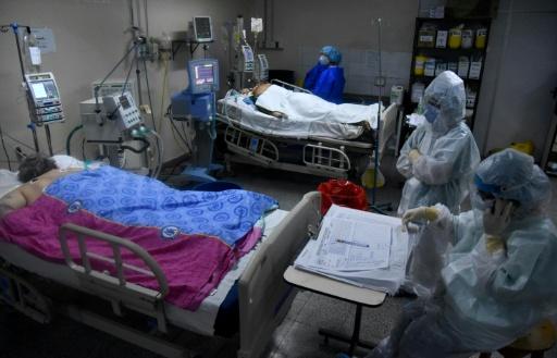 Trabalhadores da saúde atendem pacientes com covid-19 no Hospital de Clínicas de San Lorenzo, no Paraguai afp_tickers