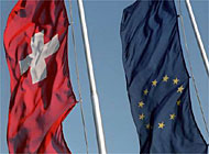 A Suíça não é membro da União Européia mas dois terços de seus negócios são feitos com os 15 países da UE. Por razões históricas de política externa e interna, a Suíça sempre praticou uma espécie de terceira via na Europa, com um máximo de integração econômica e um mínimo de integração política. ·