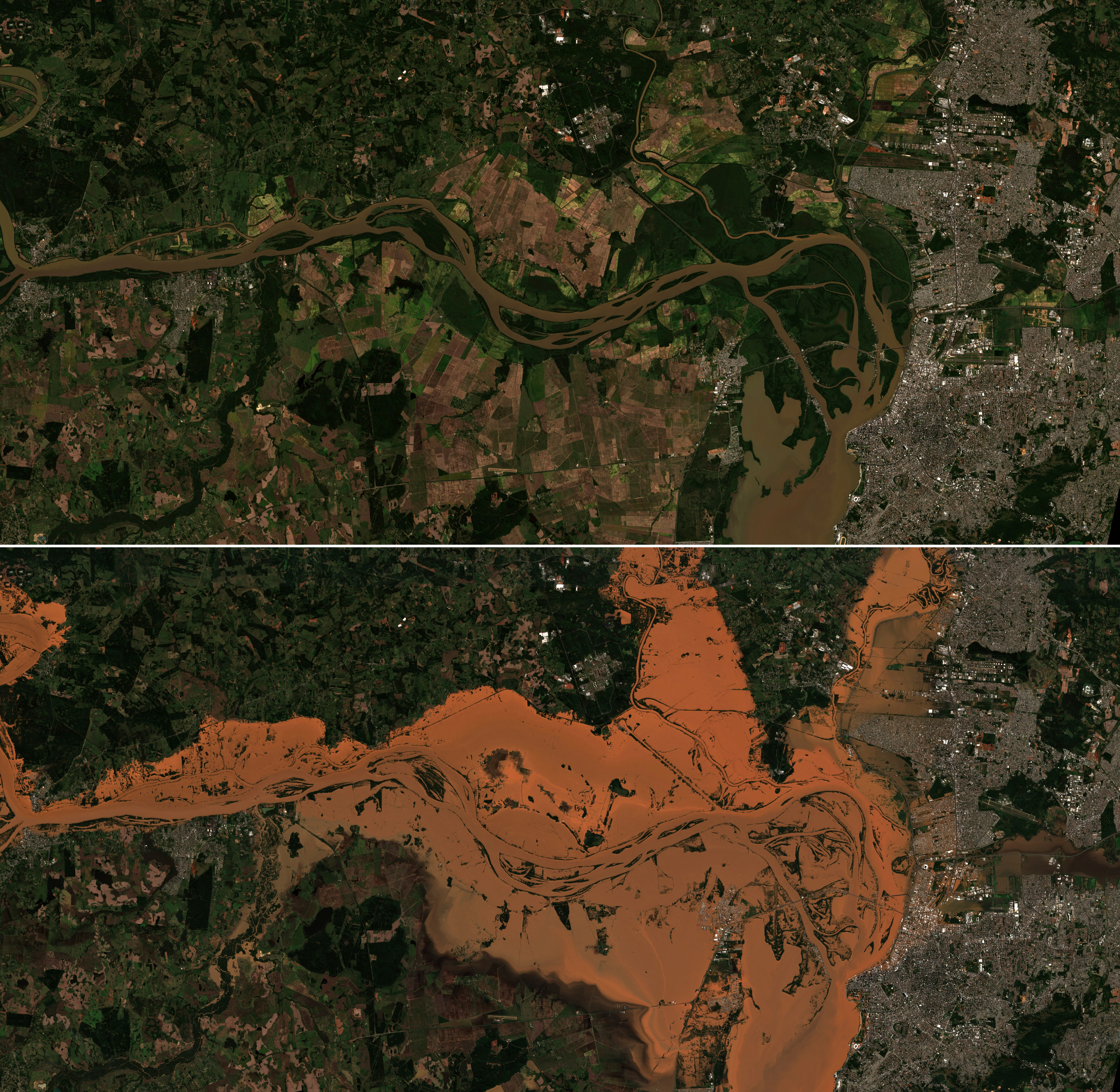Além de silos e lavouras, as inundações mataram animais em granjas, paralisaram abates de suínos e aves em algumas regiões e deixaram máquinas e tratores debaixo d’água. Também prejudicaram a infraestrutura do Estado, ameaçando a oferta de grãos para exportação nos portos, já que a ferrovias e estradas estão bloqueadas. Há ainda problema no abastecimento de combustíveis.
