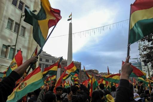 Bolivianos celebram nas ruas de La Paz a renúncia do presidente de Evo Morales, em 10 de novembro de 2019 afp_tickers