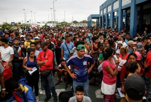 Migrantes venezuelanos na fronteira de Tumbes para entrar no Peru, em 31 de outubro de 2018 afp_tickers