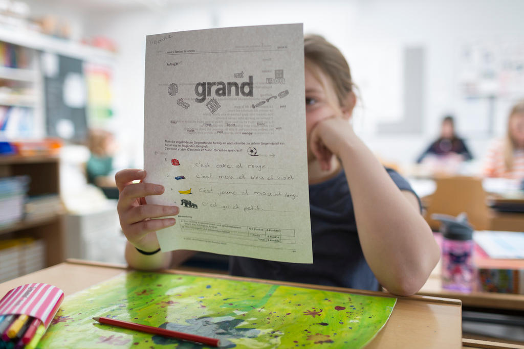 Num nível mais básico, a lingua é um tema constante na escola primária suíça. As crianças, por exemplo, que estão habituadas a falar um dialeto (alemão) em casa, enfrentam a árdua tarefa de aprender a língua alemã oficial ao ingressarem o primeiro ano escolar. As famílias encontram-se mais flexíveis no tocante a trabalho, mudam-se para outros cantões, onde se fala uma outra língua. Em algumas cidades grandes, o número de crianças estrangeiras é alto, muitas sequer dominam a língua local. As escolas primárias confrontam-se dia-a-dia com uma certa pressão em conseguir suprir as necessidades de todas estas crianças.
