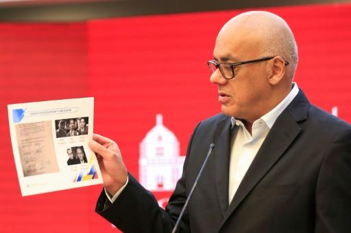 Foto divulgada pela assessoria de imprensa da Presidência venezuelana que mostra o ministro das Comunicações da Venezuela, Jorge Rodríguez, em mensagem televisionada, do Palácio Presidencial de Miraflores, em Caracas , 7 de maio de 2020. afp_tickers