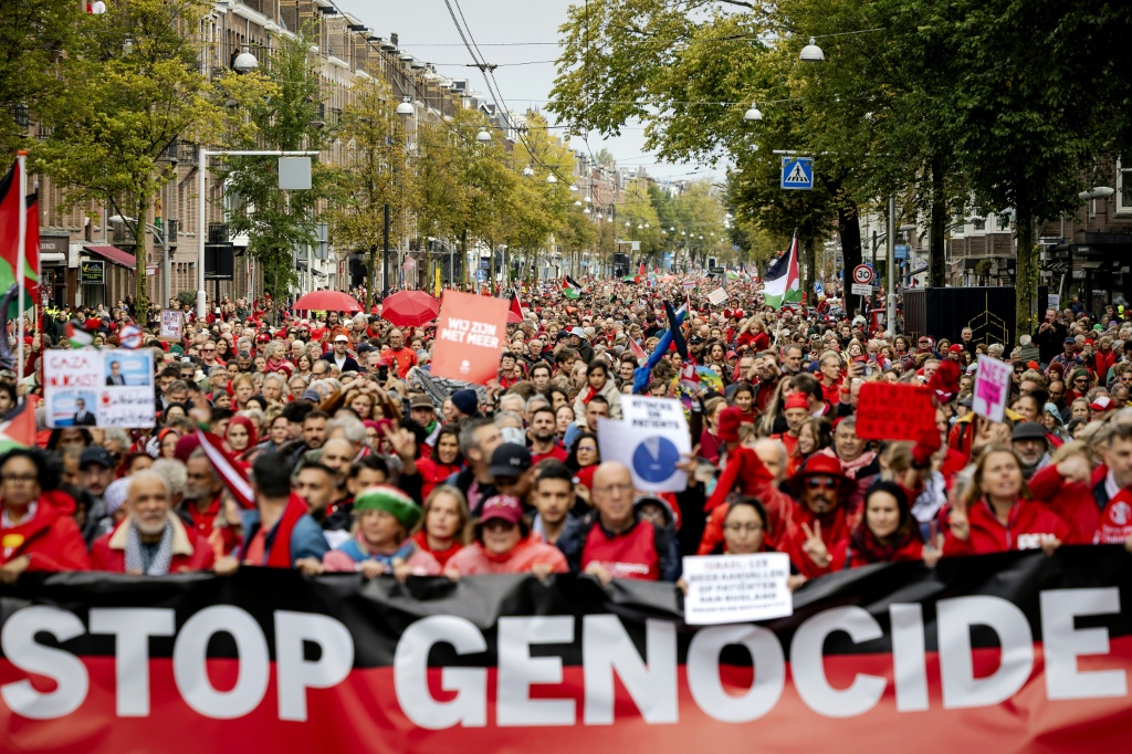 Os organizadores da ‘Rode lijn’ (Linha vermelha) indicaram que cerca de 250.000 pessoas protestaram na capital holandesa, pedindo ações do governo dos Países Baixos contra Israel.
