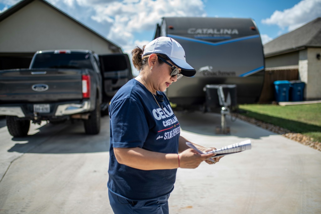 No início de outubro, Cecilia se reuniu com sua equipe em Jourdanton, uma cidade rural ao sul de San Antonio, para bater de porta em porta em um bairro com predominante apoio ao candidato republicano Donald Trump.