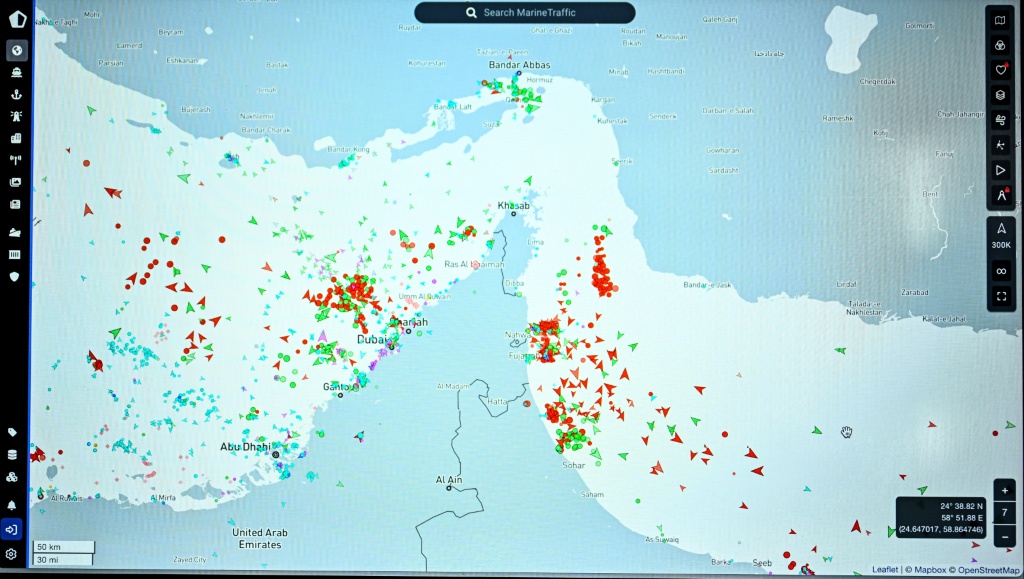 Desde que começou a guerra, mais de 40% dos navios que passam pelo estreito foram submetidos a sanções dos Estados Unidos, da União Europeia ou do Reino Unido, segundo uma análise da AFP com base em dados de trânsito.
