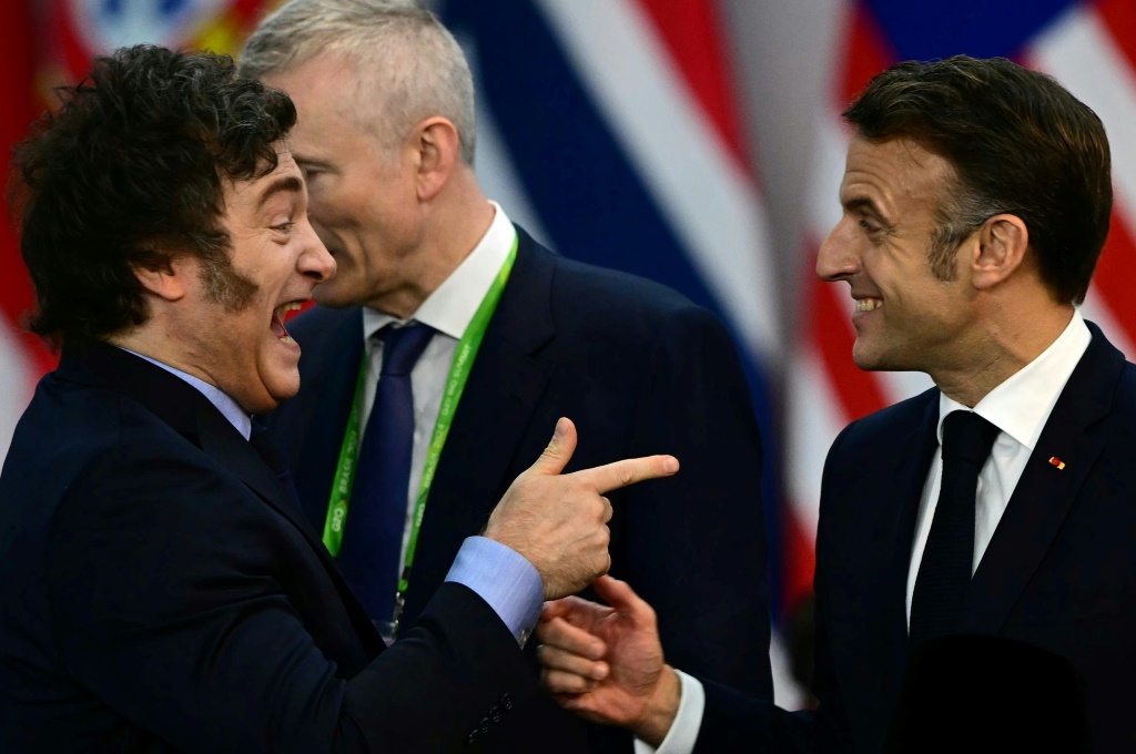 Milei, no entanto, não foi um “patinho feio”. Aproximou-se sorridente diversas vezes do presidente francês, Emmanuel Macron, que visitou Buenos Aires no fim de semana. O europeu respondeu com risos e piadas.