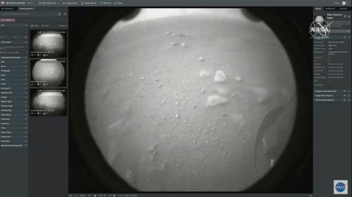 A Nasa publicou na conta do Twitter da missão Perseverance uma foto em preto e branco capturada pelo dispositivo, que mostra a superfície granulada da cratera de Jezero, no hemisfério norte de Marte.