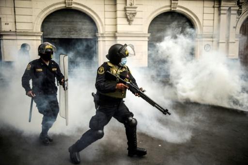 Policiais lançam gás lacrimogêneo para dispersar manifestação contra o novo governo em Lima em 10 de novembro de 2020 afp_tickers