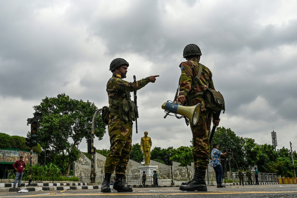 Na capital Daca, uma megalópole de 20 milhões de habitantes, as ruas vigiadas por soldados e veículos blindados – mobilizados na sexta-feira – estavam praticamente desertas ao amanhecer.