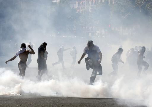 Os jornalistas da AFP registraram várias pessoas lançando projéteis na polícia, que respondeu com gás lacrimogêneo. Diversos jovens, alguns de rosto coberto, lançaram pedras contra vitrines de lojas. Um ponto de ônibus foi destruído.