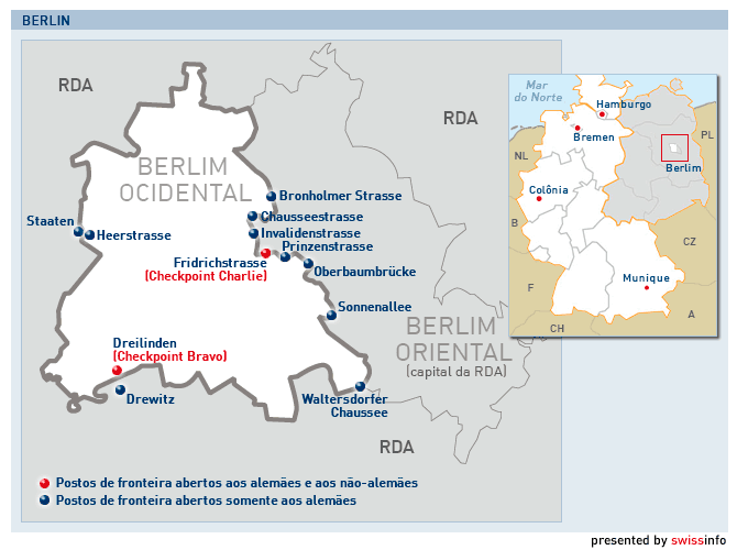 A festa dos 20 anos da queda do Muro de Berlim está em pleno andamento quando swissinfo.ch encontra Gunnar Lang na prefeitura de Büsingen, a 800 quilômetros da capital alemã, nesta chuvosa segunda-feira (9/11) de outono.
