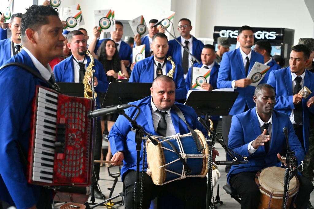 A banda foi criada há três meses para favorecer a reinserção social dos detentos e as autoridades contrataram como regente o músico Carlos Umaña.