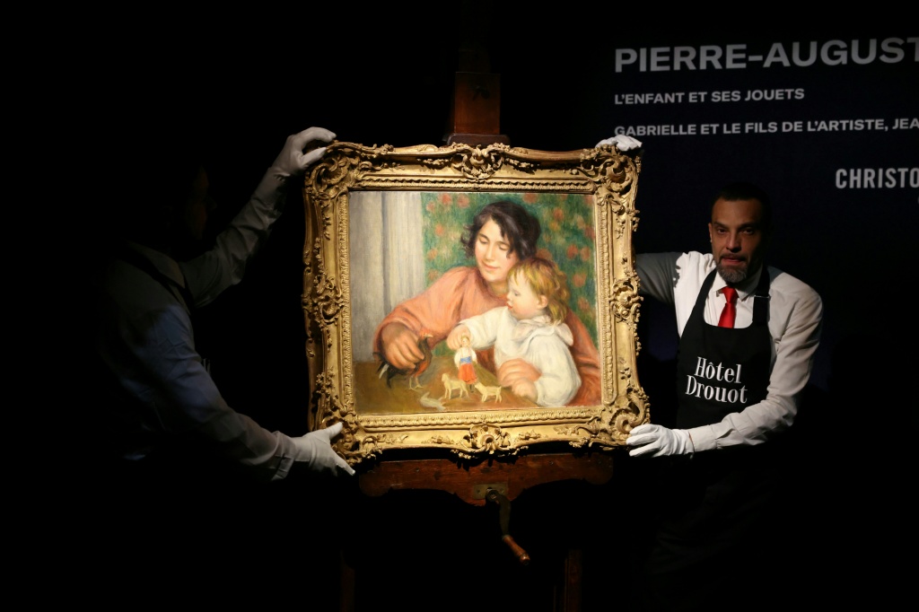 Intitulada “A Criança e Seus Brinquedos – Gabrielle e o Filho do Artista, Jean”, esta pintura “está estimada entre 1 milhão e 1,5 milhão de euros, de forma muito razoável”, disse à AFP Christophe Joron-Derem, leiloeiro responsável pela venda na casa de leilões Drouot.