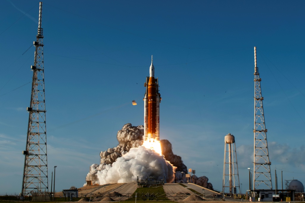 O foguete Space Launch System (SLS) decolou pontualmente, às 18h35 locais (19h35 de Brasília), do Centro Espacial Kennedy, na Flórida. Poucos minutos depois, o comandante americano da missão, Reid Wiseman, exclamou: “Temos um belo nascer da Lua”.